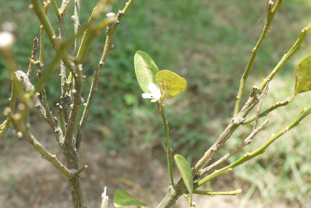 A tree that reaches up to 5 m tall. Stems are spiny. Leaves are pointed. It bears clusters of white, fragrant flowers. Fruits are round and turn yellow when ripe.