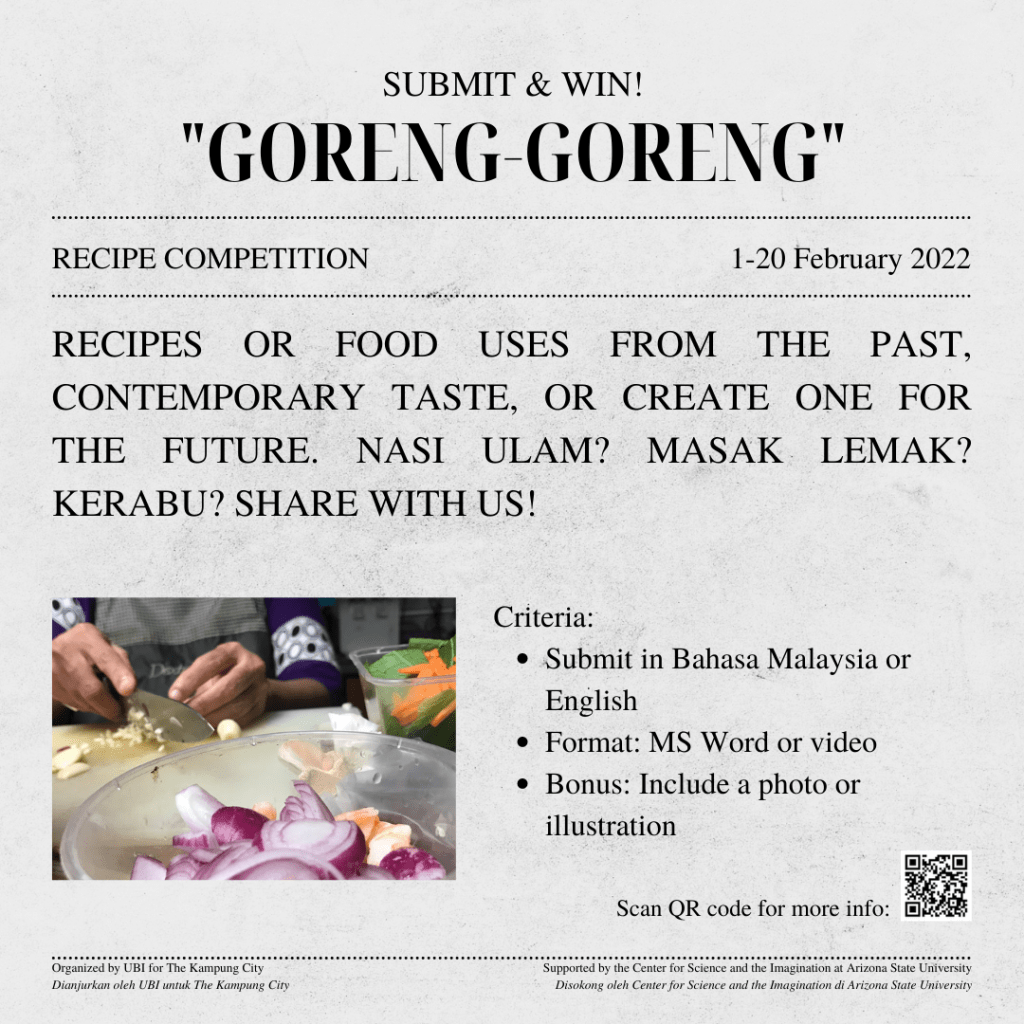 This competition is organised by the Urban Biodiversity Initiative (UBI) as part of The Kampung City, an Applied Imagination project supported by the Center for Science and the Imagination at Arizona State University.